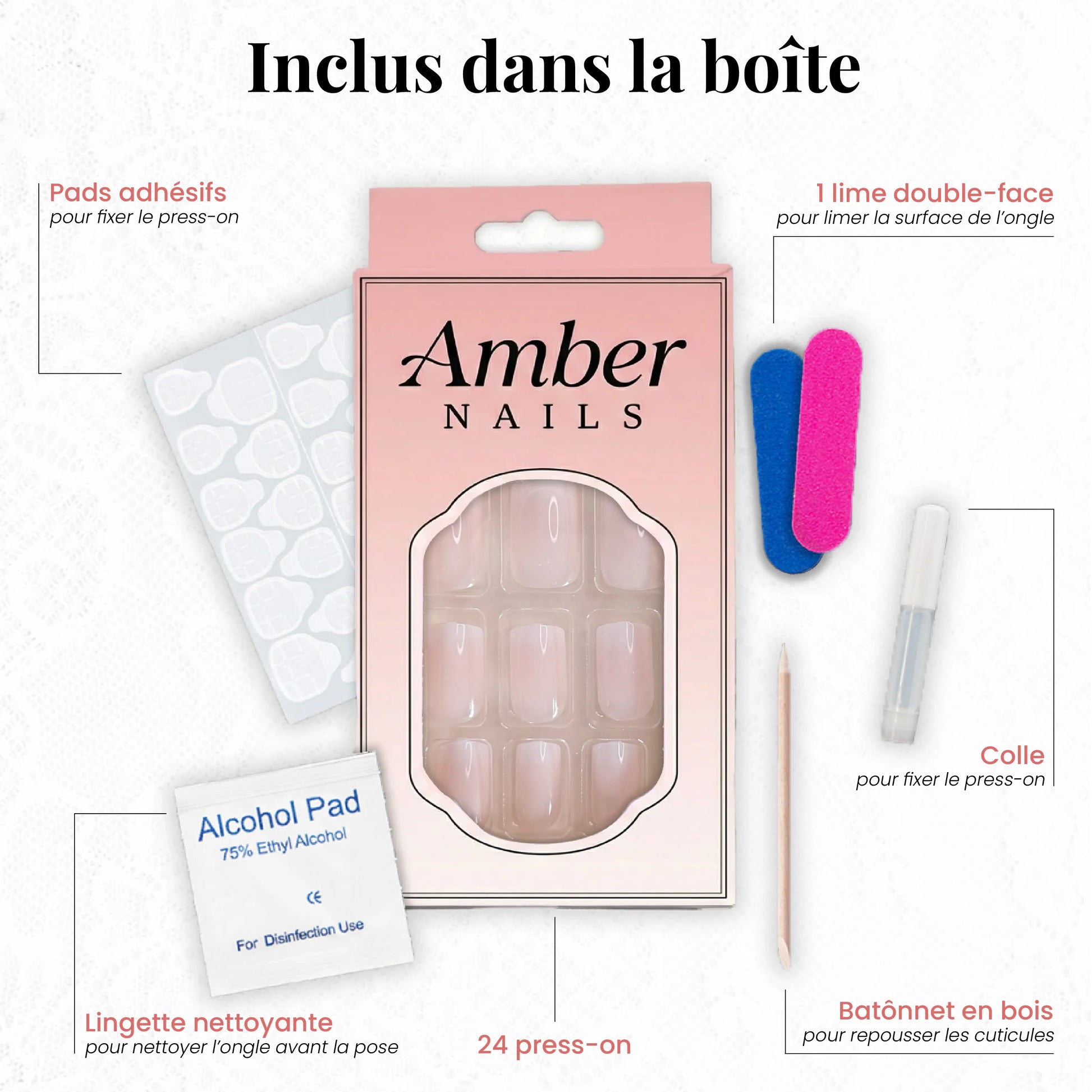 Contrairement aux méthodes traditionnelles (gel, résine, semi-permanent abrasif), nos press-on n’abîment pas tes ongles.