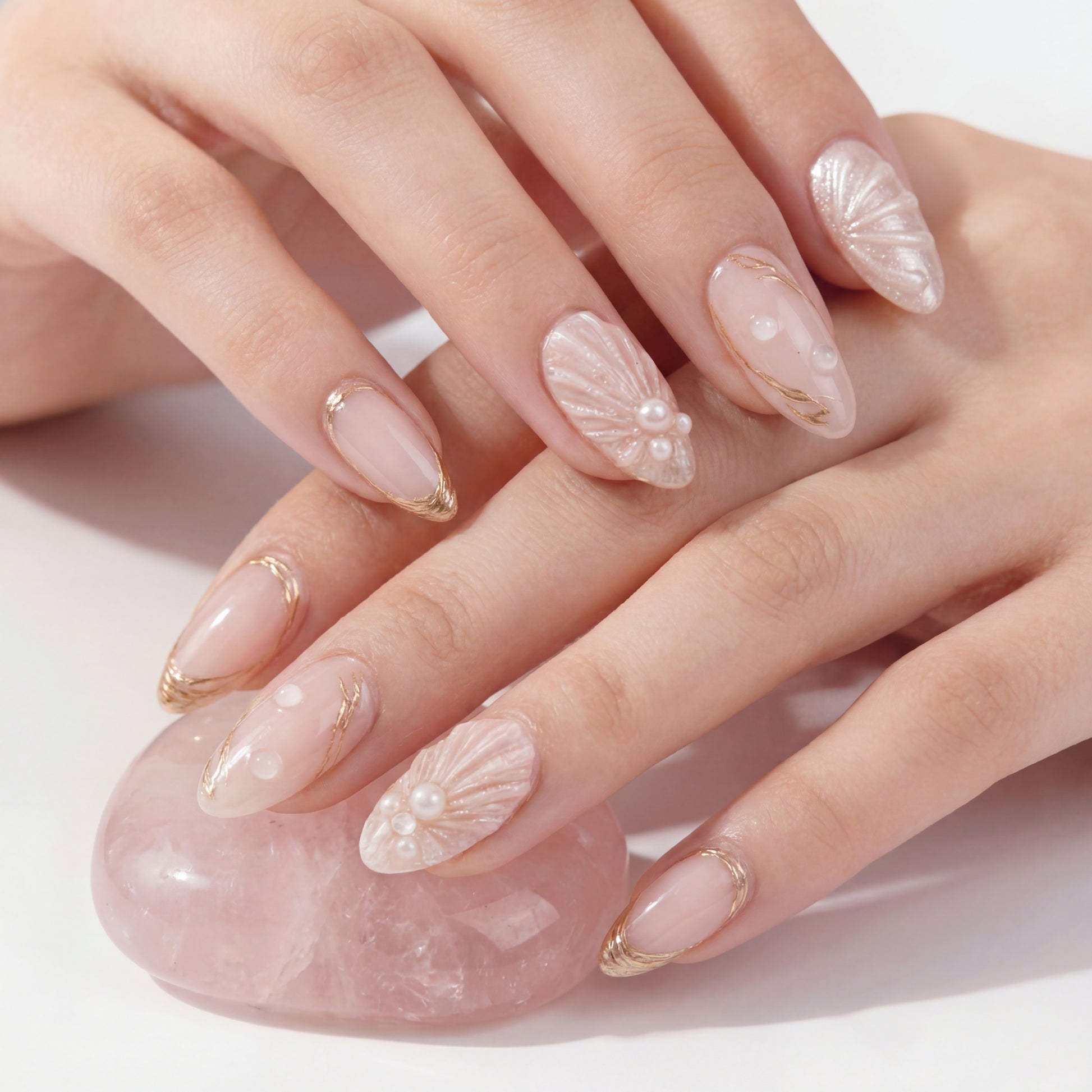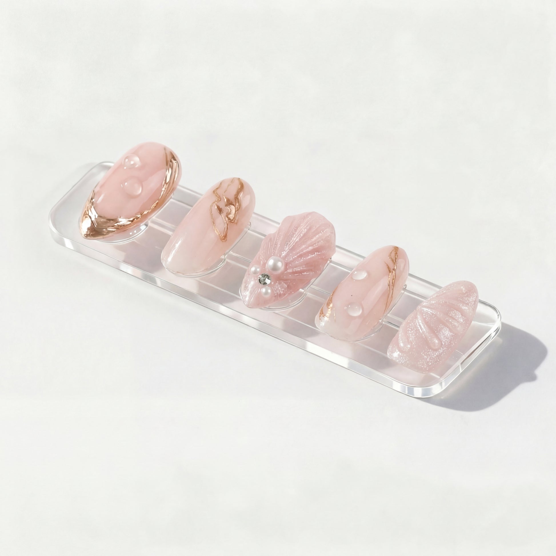 Design : Rose pâle translucide avec marbrures et accents dorés